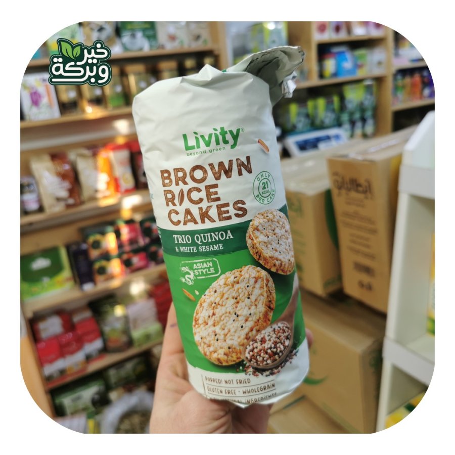 Livity رايز كيك صحي كينوا وسمسم ابيض خالي من الجلوتين وزيت النخيل والالوان الصناعية
