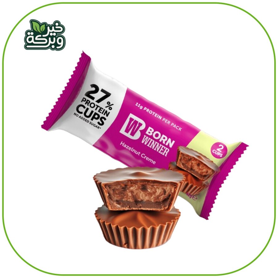 بروتين (Cups) بورن وينر بنكهة الكاكاو وحشوة كريمة البندق 27% بروتين بدون سكر 42 غم