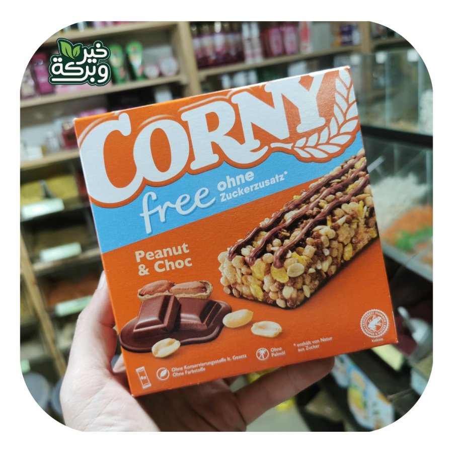 كورني شوفان بارز بالفول السوداني والشوكولاتة بدون سكر مضاف (علبة 6 قطع)