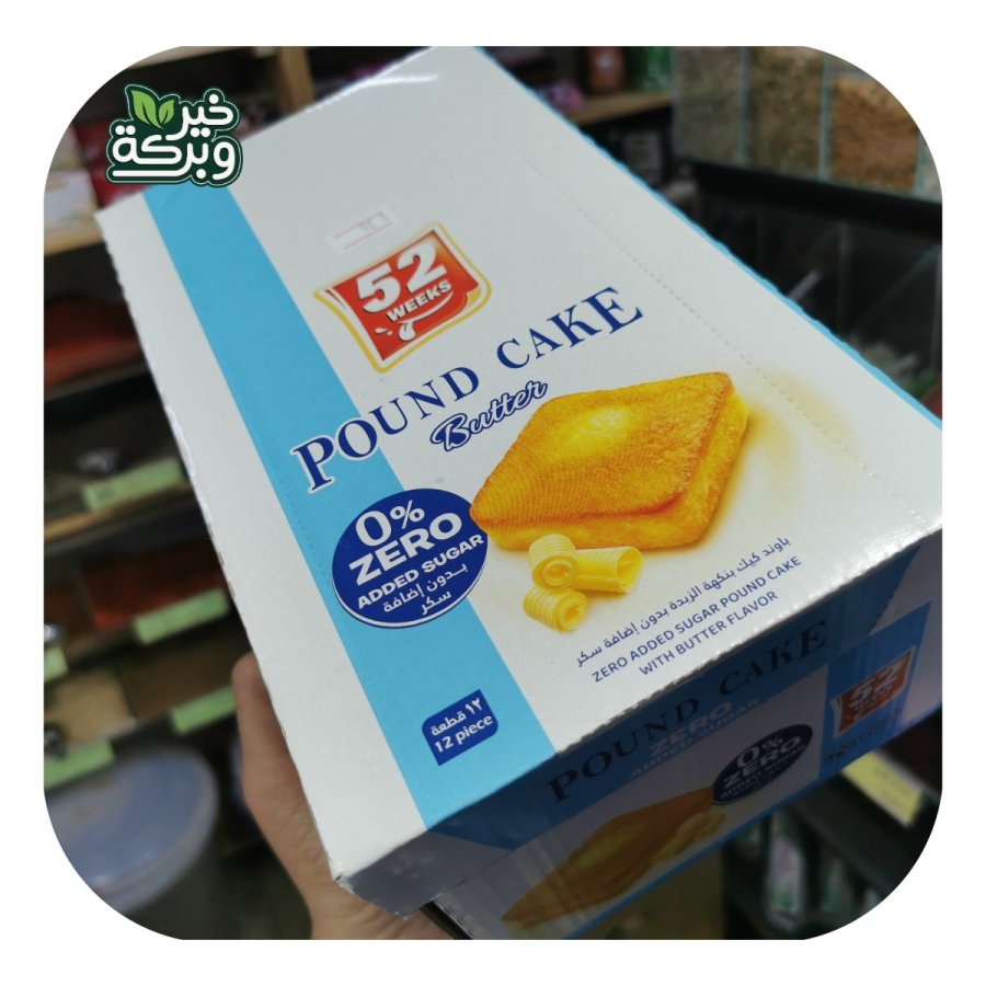 باوند كيك بالزبدة بدون سكر مضاف (علبة كاملة 12 قطعة)