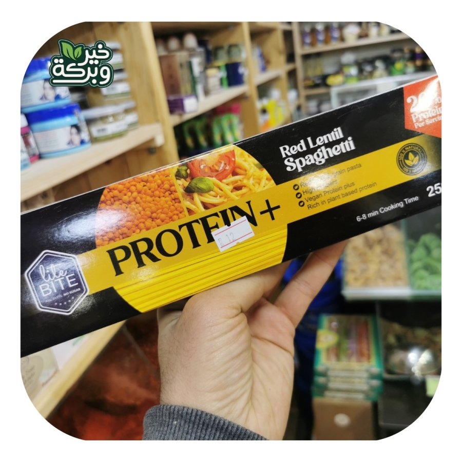 مكرونة سباغتي مصنوعة من العدس و قمح السيمولينا الذهبي غنية بالبروتين والالياف