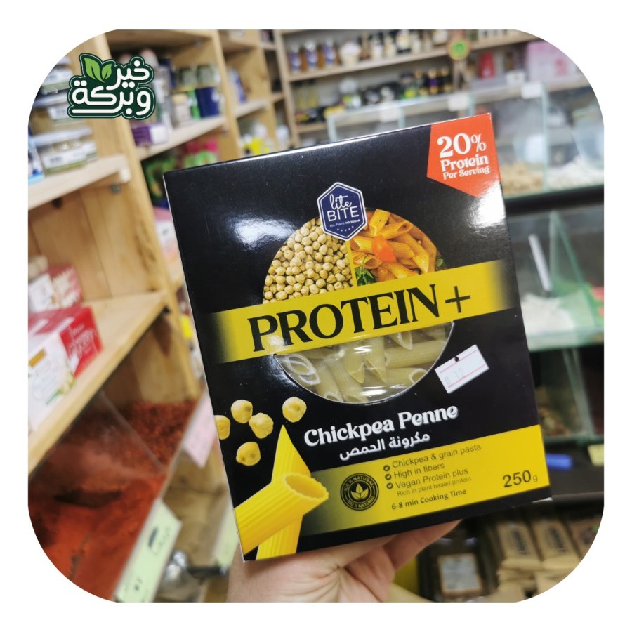 مكرونة اسطوانية من lite bite مصنوعة من الحمص و قمح السيمولينا الذهبي غنية بالبروتين والالياف