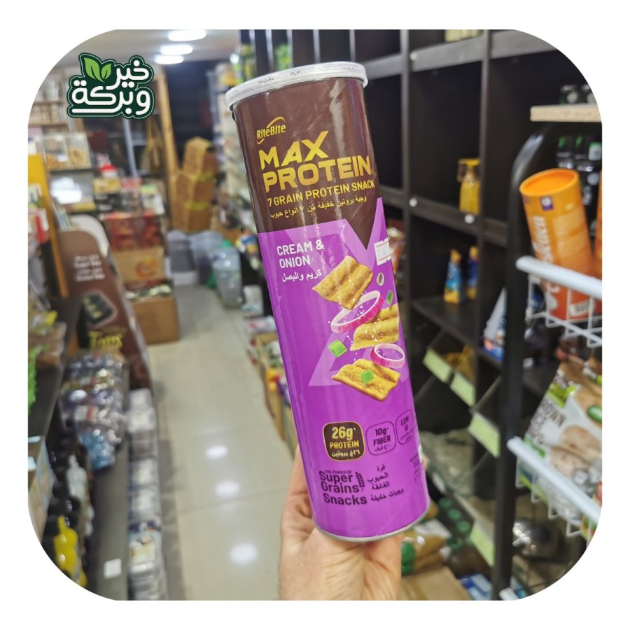 شيبس ماكس بنكهة الكريمة والبصل 26% بروتين غني بالألياف بدون زيت النخيل 150 غم