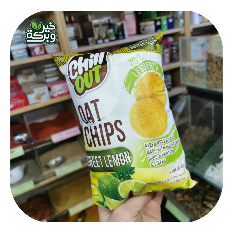 Chill Out شيبس شوفان ليمون حلو 60 جرام محمص غير مقلي بدون زيوت مهدرجة خالي من المواد المعدلة وراثيا 70٪ دهون اقل