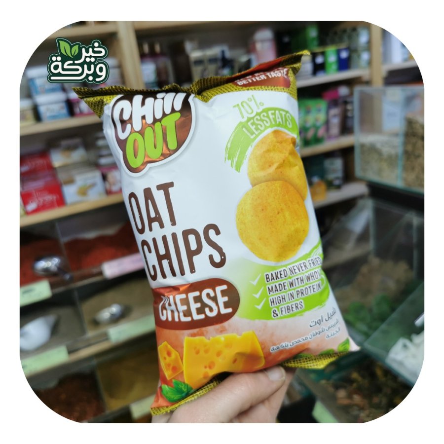 Chill Out شيبس شوفان جبنة 60 جرام محمص غير مقلي بدون زيوت مهدرجة خالي من المواد المعدلة وراثيا 70٪ دهون اقل