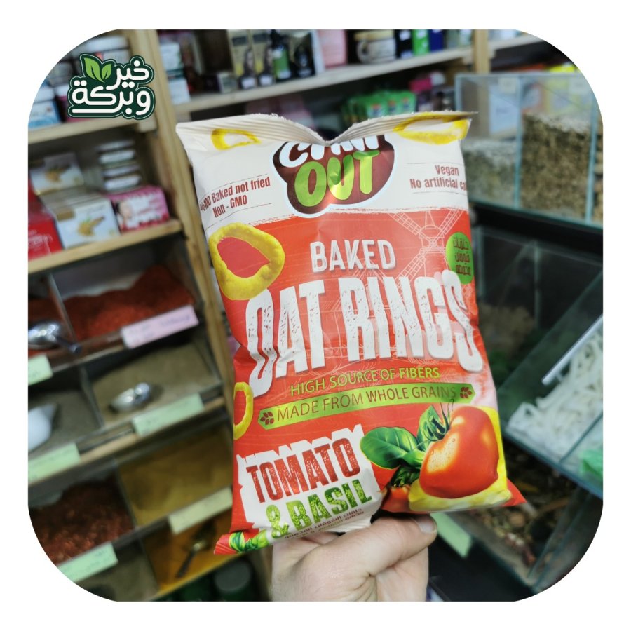 Chill Out حلقات شوفان طماطم وريحان 60 جرام محمص غير مقلي بدون زيوت مهدرجة خالي من الالوان الصناعية